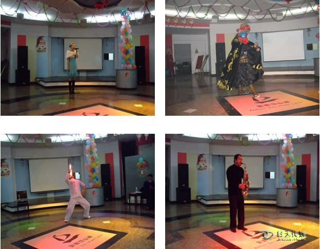 聯歡會上,岱山(shān)湖旅遊開發公司副總經理(lǐ)劉梅,對兩年(nián)來(lái)與經天傳媒的合作給予了高度好評,并代表岱山(shān)湖旅遊開發公司,向經天傳媒表達了誠摯的謝意。聯歡活動還(hái)舉行了由經天傳媒策劃、組織的文藝晚會。來(lái)自(zì)經天藝術(shù)團等藝術(shù)團體(tǐ)的演員(yuán),表演了舞蹈、歌唱、雜技、器樂演奏、黃(huáng)梅戲、變臉等文藝節目,在現場激起一陣陣歡迎的掌聲,将聯歡活動推向了高潮。
