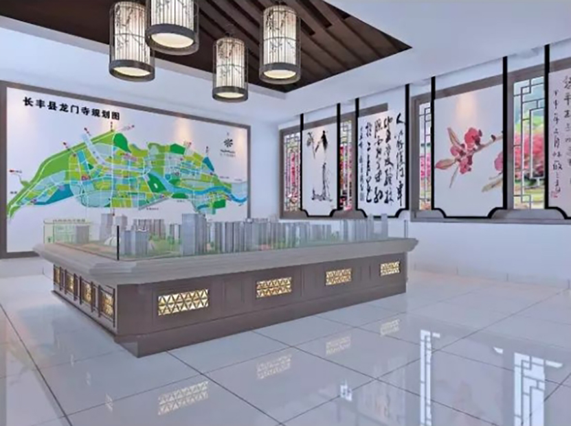 經天傳媒主設計(jì)師(shī)介紹說(shuō),根據桃花館的主題,我們以傳統的中式山(shān)水畫(huà)風(fēng)格,作爲設計(jì)基調,既與原先的室内、室外建築格局相(xiàng)呼應,相(xiàng)吻合,同時注意了整體(tǐ)文化館的内涵和文化品位。館内外以沙盤、字畫(huà)、屏風(fēng)、宮燈等元素,進行裝飾和表現,同時在傳統的基礎上,也吸納了現代科(kē)技元素,如(rú)大(dà)型電子顯示屏、射燈等。整體(tǐ)設計(jì)布局合理(lǐ),上下左右,裝點相(xiàng)宜,空間感适宜、得(de)體(tǐ),有動有靜(jìng),傳統與現代有機(jī)融合,觀感十足,韻味悠長。
