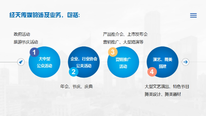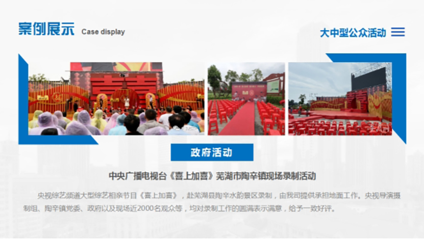 經天傳媒深耕活動策劃和執行20餘年(nián),服務了近500家各類型客戶,充分(fēn)體(tǐ)現了“創新引領未來(lái)”的企業使命。經天傳媒将百尺竿頭更進一步,爲下一個20年(nián)馳而不息,勇毅前行,真誠服務客戶,創造更佳業績,努力踐行“創意無限,真誠永遠(yuǎn)”的企業服務理(lǐ)念。
